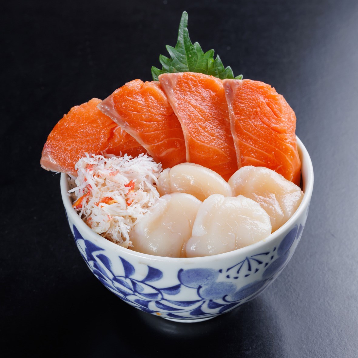 今回ご紹介するのは「蟹・ほたて・サーモン丼」です!