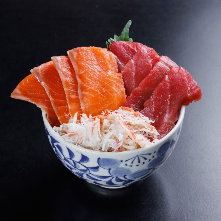 今回ご紹介するのは「蟹・まぐろ・サーモン丼」です!